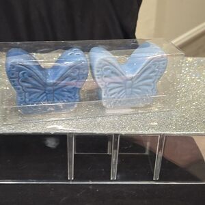 Charming blue butterfly-shaped salt and pepper shakers. Perfect for adding a whimsical touch to your table.