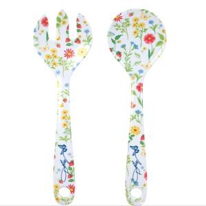 Colorful floral salad server set by Polly. Features vibrant flower patterns.