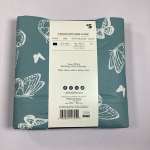 Dolly Parton PEVA Tablecloth Blue Butterfly New 60" x 84" Discontinued