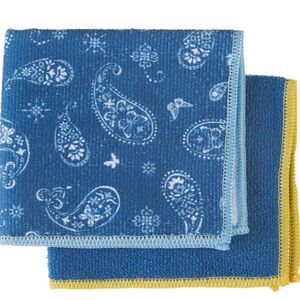 Set of blue paisley and checkered towels. Perfect for adding a touch of style to your kitchen or bathroom.
