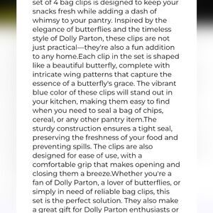 Dolly Parton Set Of 4 Butterfly Bag Clips- Blue
