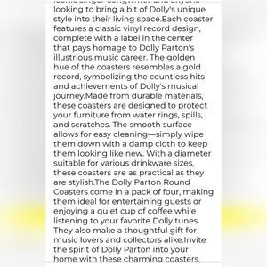 Dolly Parton Set Of 4 Gold Vinyl Coaster Set
