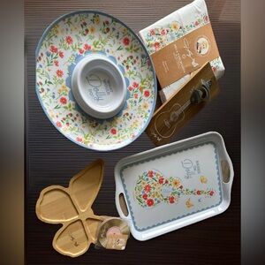 The Dolly Parton Table Cloth, Party Trays, Coasters, & bottle opener set features a charming country living style with a colorful design showcasing wildflowers, guitars, and butterflies. Made of PEVA, wood, and plastic, this 6-piece set is perfect for adding a touch of whimsical fun to any party or gathering. Each piece is adorned with a vibrant multi-color palette, making it a unique and eye-catching addition to your decor collection. Perfect for fans of Dolly Parton and country-inspired aesthetics.