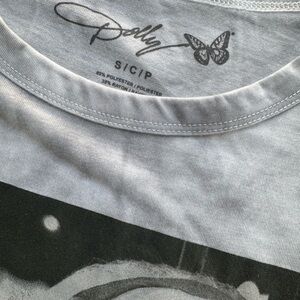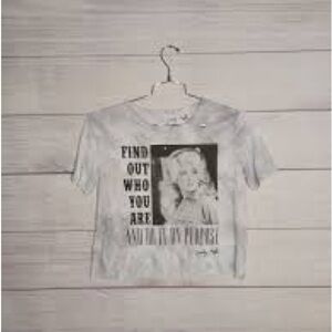 Dolly Parton crop top washed ight gray color size small no gray but sticker