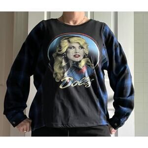 Dolly Parton flannel shirt, reworked tee, upcycled, country music Large