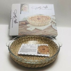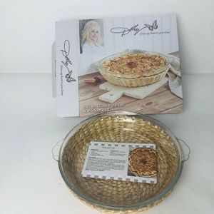 Dolly Parton My Heart To Your Home 9.25 in. Glass Pie Plate & Wicker Basket New