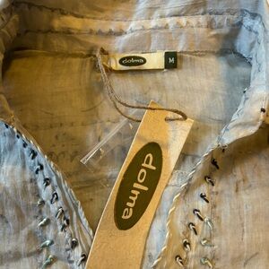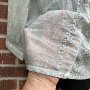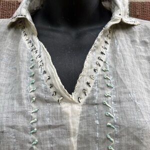Dolma Anthropologie NWT Sz M Mint Green Cut-Out V-Neck Lagenlook Cotton Top