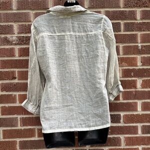Semi sheer. Collared V-Neck 3/4 sleeve