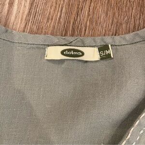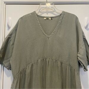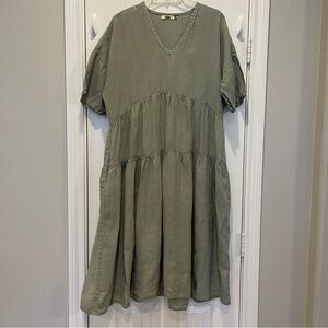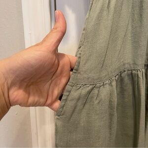 Dolma Midi Dress Women’s Small Med Green 100% Linen Tiered Boho Lagenlook FLAW