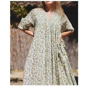 Dolma Skye Dress Hand Block Printed Green Size Large