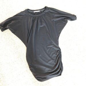 Great scrunched detail in traditional Susana Monaco no-wrinkle fabric, color is a very dark navy, loose for a Small