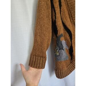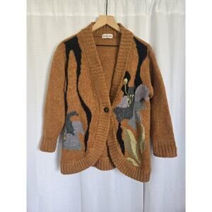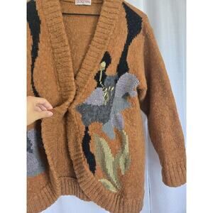 Dolores Womens Medium Mohair Wool Blend Cardigan Floral Brown Sweater