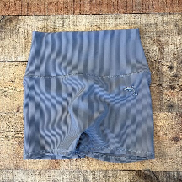 Dolphfit Grey Ribbed Shorts Medium Bike Short Scrunch Active Athletic Workout