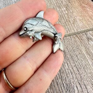 Vintage dolphin brooch with two smaller dolphins on back and that are earrings to be removed and worn