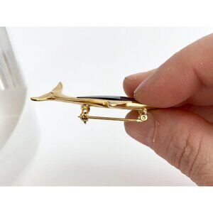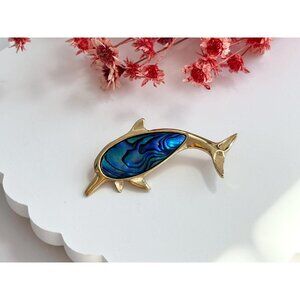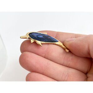 Dolphin Figural Faux Blue Abalone Gold Toned 90's Vintage Lapel Brooch Pin