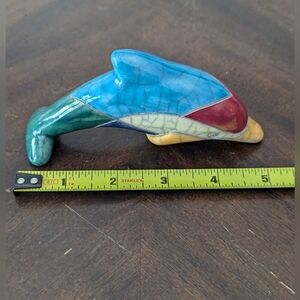 Dolphin Figurine Raku Colorful In Great Pre-owned Condition