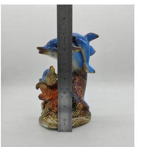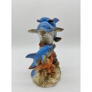 Dolphin Figurine Dolphins Decorative Sculpture Beautiful 7" Ceramic Decor Ocean