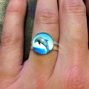 Dolphin Handmade Glass Dome Adjustable Ring.