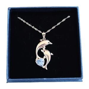 Dolphin Heart Necklace 925 Sterling Silver NIB