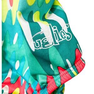 This fun and vibrant Dolphin Uglies one piece swimsuit is perfect for swim team practice, recreational swimming, or just making a splash! Features a bold multicolor wave pattern with striped straps and a comfortable, durable fit.