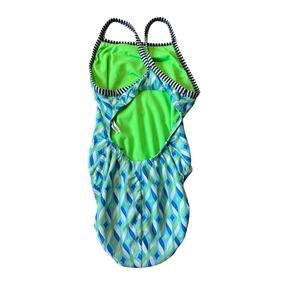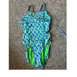 Dolphin Ugly, UGLIES; Women’s swimsuit size 32. Green & Blue pattern