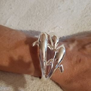 Dolphin bangle bracelet silver plated