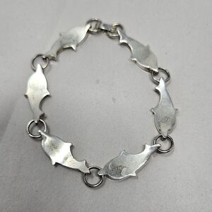 Dolphins Sea Life Love Sterling 925 Silver Wrist Linked Bracelet 7.5 Inches