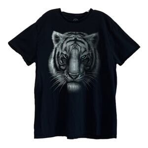 Dom Oversized White Tiger Animal Face Graphic Tee in a size 2XL. Has a rounded neckline and a graphic front. Measures approx. 23” armpit to armpit, 29 1/2” length. 100% cotton. In great condition.