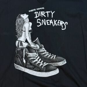 Dom Rebel Graphic T-Shirt Womens Black V-Neck Finders Keepers Dirty Sneakers XL