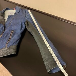Doma Leather OOAK reworked moto Jacket, blu with animal print and back graphic S