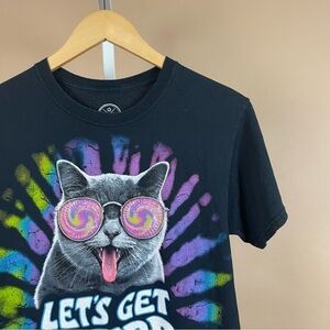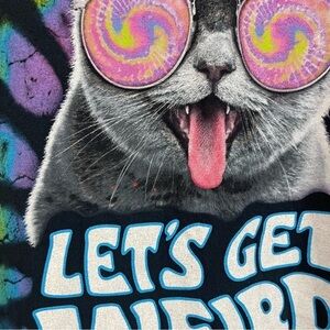 Doma Let's Get Weird Cat Size Small Tie Dye Graphic Tee Shirt Hippie Funny