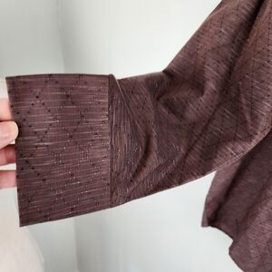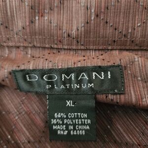 Domani Platinum men's button down shirt. Size XL. Pointed collar. Long sleeve. Hidden buttons. Brown with diamond pattern. 64% cotton. 36% polyester. Like new. No tears or stains.