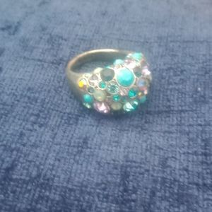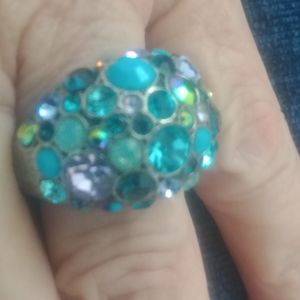 Dome ring from Dillard's. Multi shades of blue stones on silver tone band. Fits size 7.
