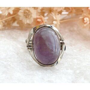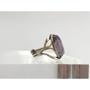Domed Amethyst Semi-Precious Silver Adjustable Southwest Vintage Ring - sz 8