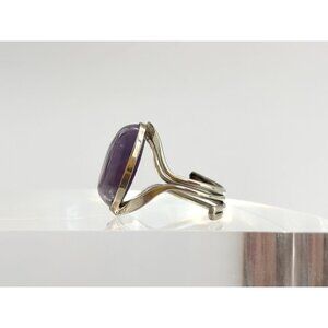 Silver toned bintage amethyst domed gemstone adjustable shank ring. The shank is double lined. Stone is domed and is bezel set. Silver toned, may contain some silver but is not sterling.