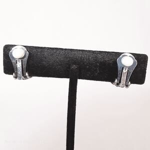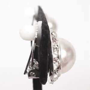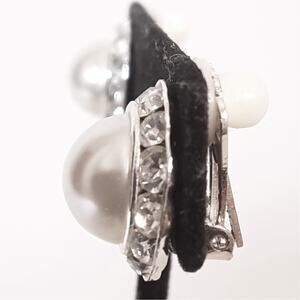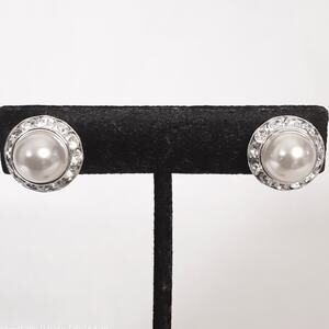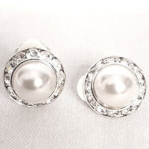Domed Faux Pearl Earrings Surrounded By Clear Rhinestones Clip Ons