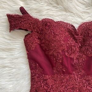 Dominating Body-fitting Off-shoulder Embroidery Lace Decorated Dress by Anny Lee