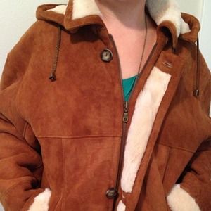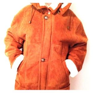 Dominic Bellissimo is world renowned as the shearling master. Genuine lamb skin. Made in Canada. It buttons down the front and has a REMOVABLE hood! Hood has drawstring to secure it more snugly around your face on those cold days. There are two hand pockets and one interior zippered pocket. The camel colored suede goes with everything. What more could you want?! You will LOVE this full length coat! Smoke free home. Stay warm, toasty and stylish.