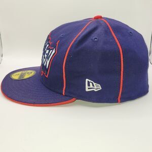 Navy Blue with red piping on cap crown. Brim is Blue on Top and Red on the bottom. Original Sticker still on Brim.