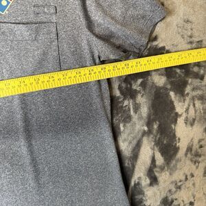 Crafted for comfort and professionalism, this Dominos Employee Shirt is a uniform polo designed for the culinary industry. The shirt comes in a versatile gray color, offering a neat and stylish look that's appropriate for workwear settings. Its short sleeves and collared neckline provide a classic polo silhouette, perfect for those who value a blend of casual sophistication and practicality. This men's size large polo is made from soft microfiber fabric, ensuring durability and ease of care. The solid pattern allows for easy pairing with a variety of pants and accessories, while the regular fit assures a comfortable wear for all-day tasks. Whether you're making pizzas or managing the floor, this shirt is an essential part of your work wardrobe.
