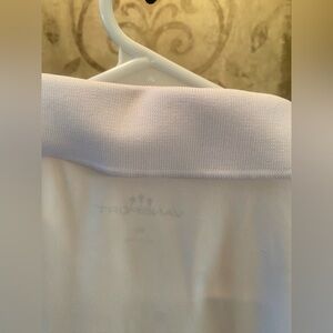 This white polo shirt features a classic collar and short sleeves, crafted from a comfortable cotton blend. Its crisp white color and simple design make it a versatile choice for various occasions.