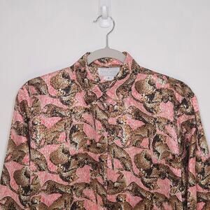 Don Caster Women's Button Up Blouse With Cheetah Design. Size 4.