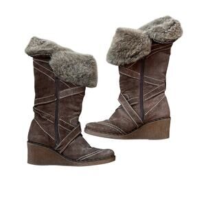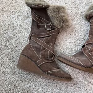 Don Diego Suede Faux Fur Buckle Wedge Snow Winter Boots size 8.5 / 39