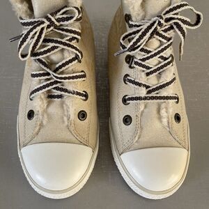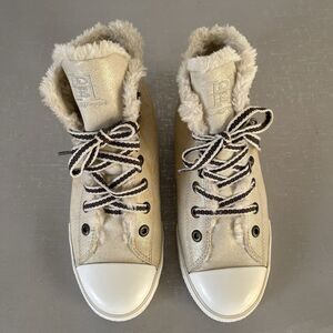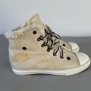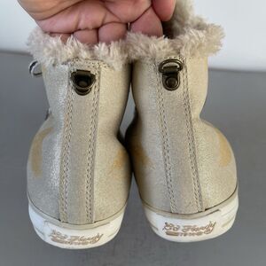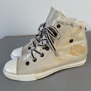 Don Ed Hardy Women's High Top Faux Fur Lined Sneaker Shoes US 8 Cream Metallic