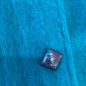 Don Elliot beautiful teal blue vintage oversized long women’s coat. There are no size or content tags but it feels Iike a wool blend. Textured. 2 diagonal welted front hip pockets. Lined. Shoulder pads. Button down with beautiful unique square buttons.