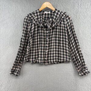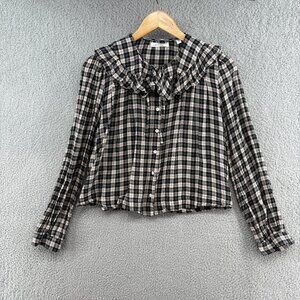 Doen Joelle blouse, Doen plaid blouse, Doen ruffle collar top, Doen checked cotton top, Doen organic cotton blouse, romantic plaid blouse, boho blouse, cottagecore plaid shirt, Doen size small