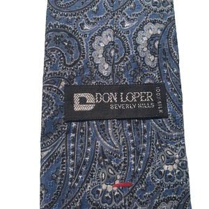 This vintage Don Loper Beverly Hills men's necktie is the perfect gift for Dad. Made from silk, it's designed for the office with a regular size and a unique blue and white paisley pattern.