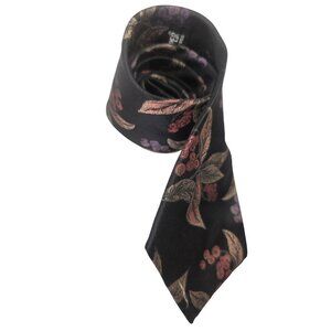Don Loper Beverly Hills 80s Jacquard Tie Botanical Gold Leaf Pattern Black 4"W