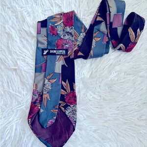 Don Loper of Beverly Hills-100% Italian silk blue w/floral geometric pattern tie