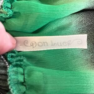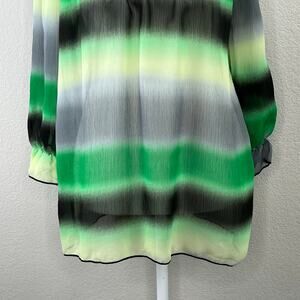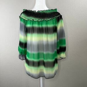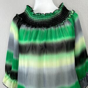 Don Luce Multi-Color Green Black Smocked Sheer Blouse Small